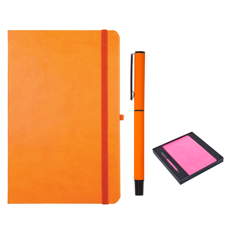 Hediyelik Set - 13x21 Renkli Kenar Not Defteri Metal Rubber Gövde Roller Kalem